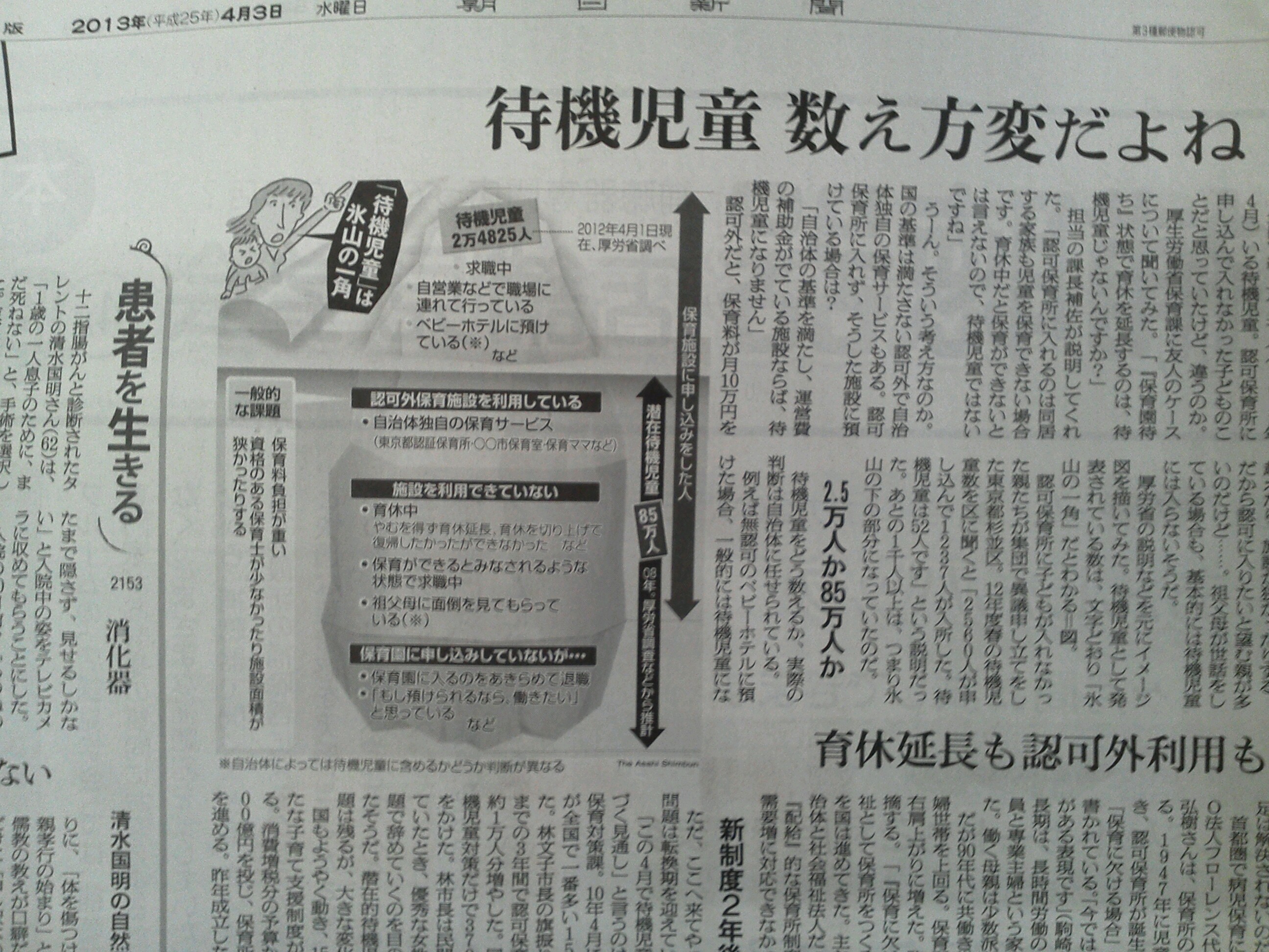 | 朝日新聞H25年4月3日記事 |
