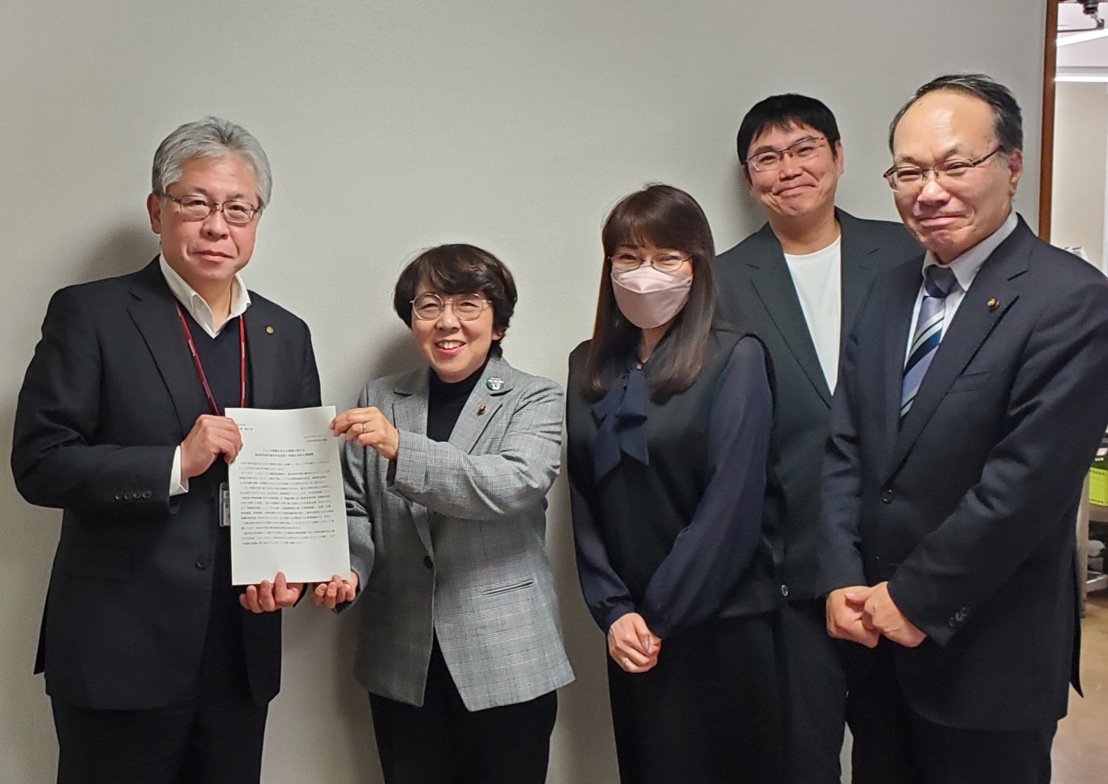 要請書は総合政策部長に手渡しました。