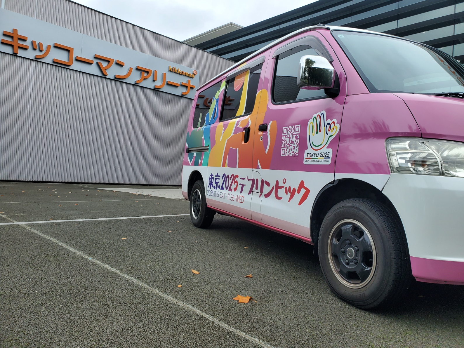 デフリンピックを宣伝するラッピングカーが流山にやってきました!!!!!!
