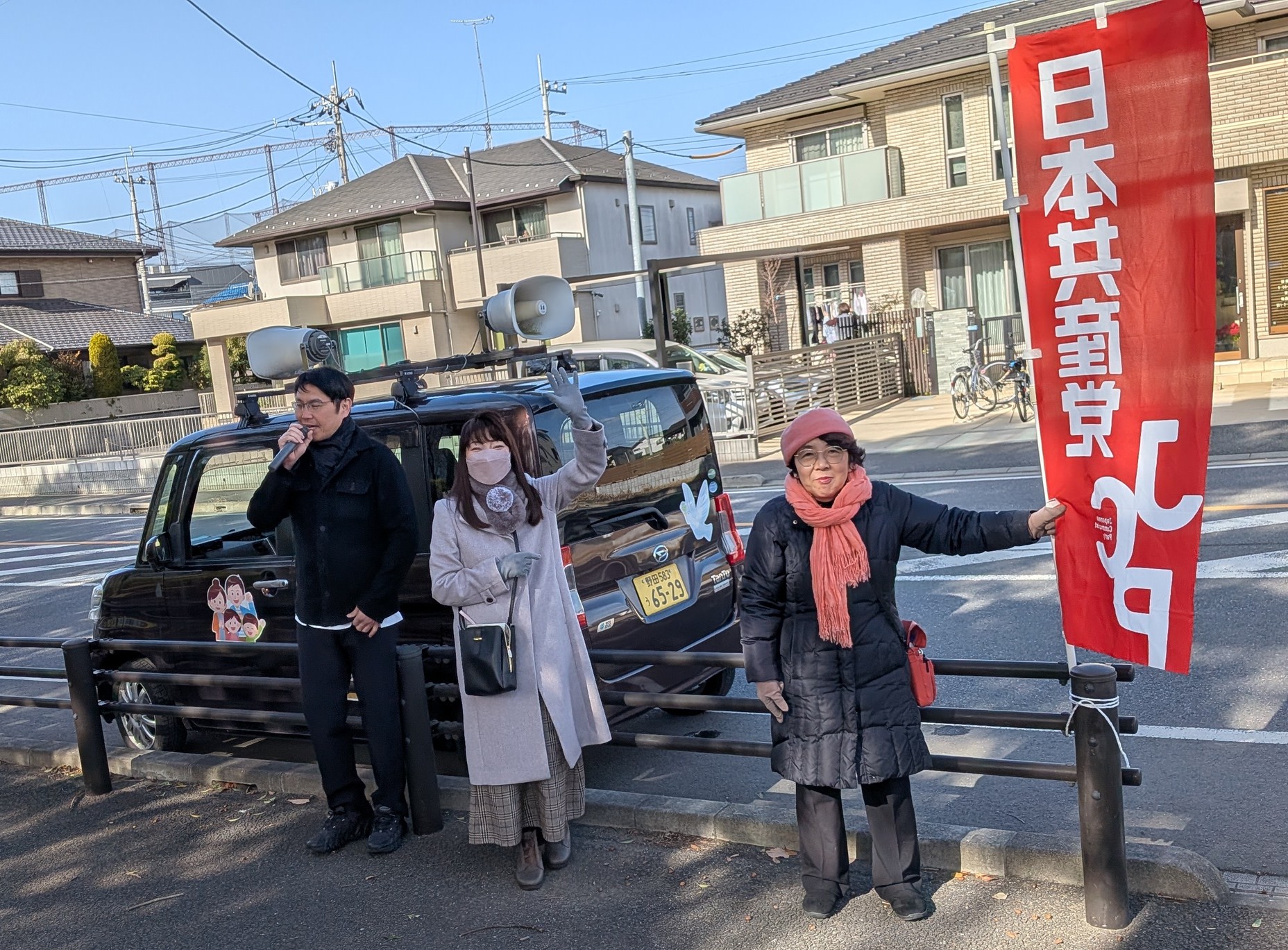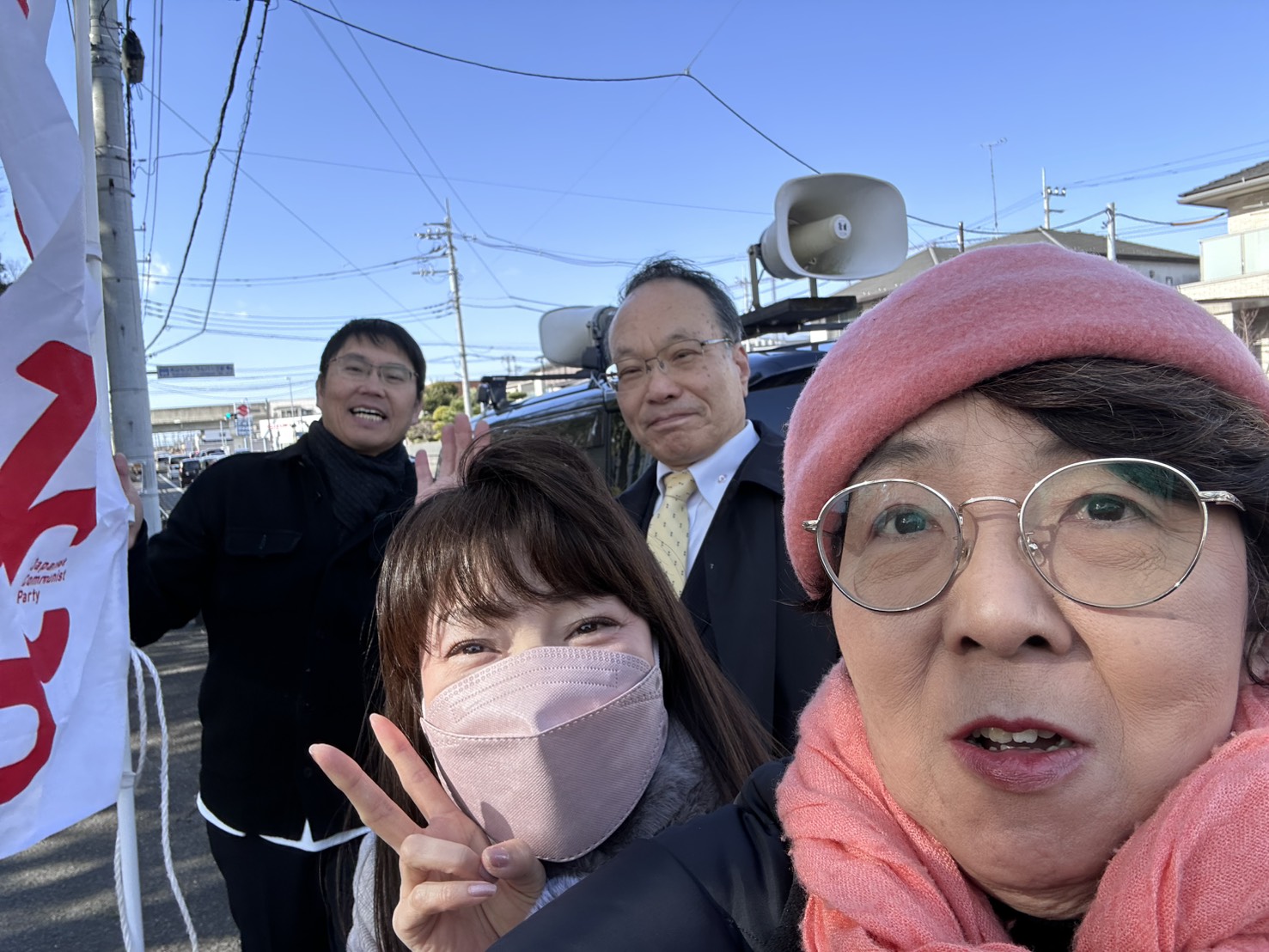 流山市議団4人でのお祝いのメッセージ宣伝でした。